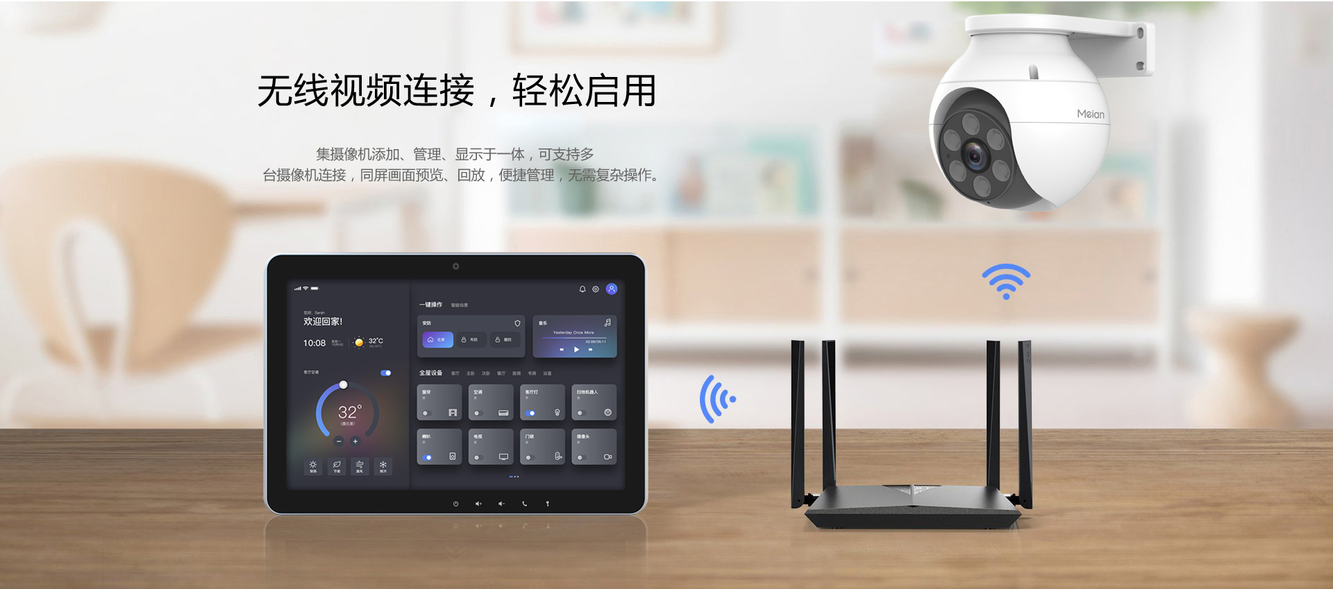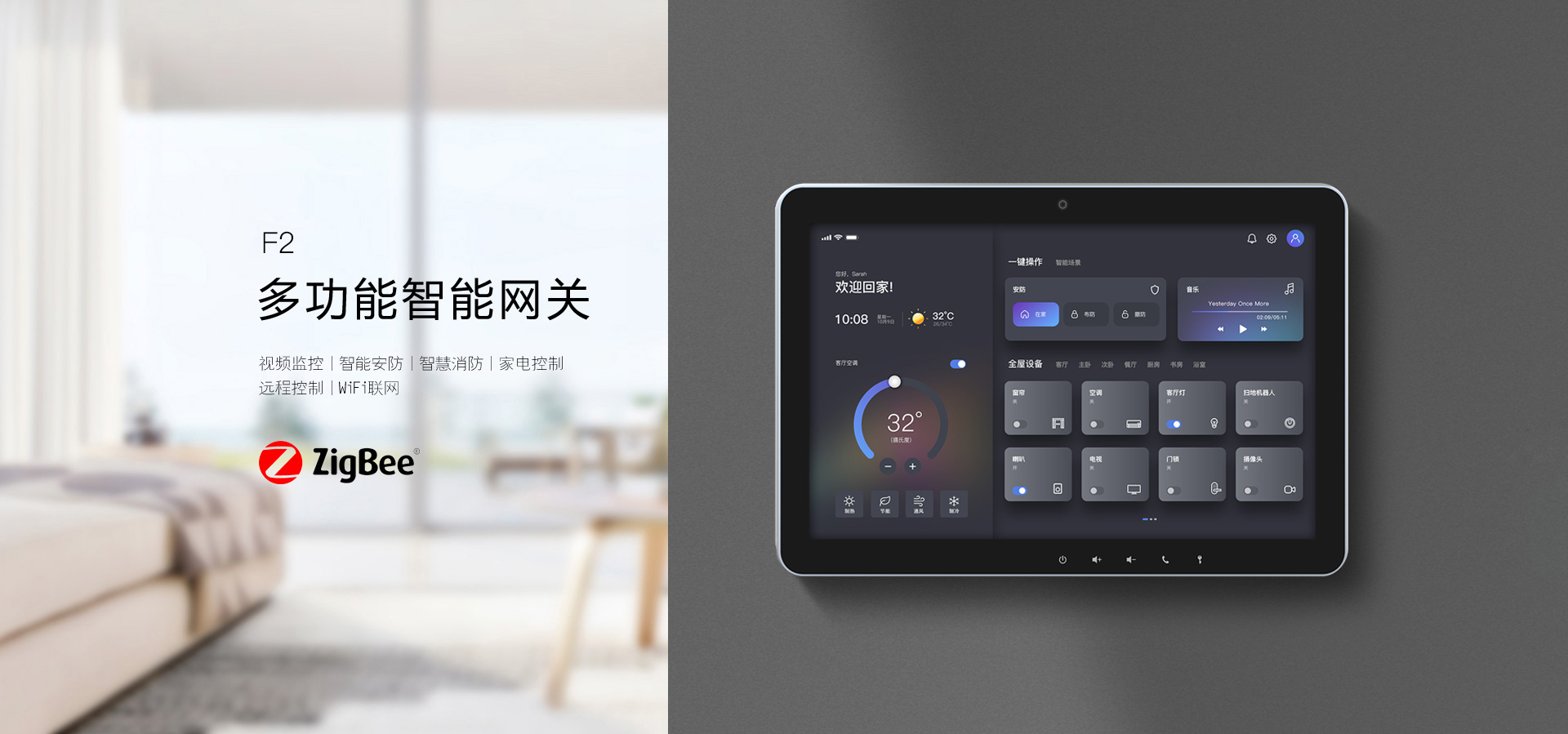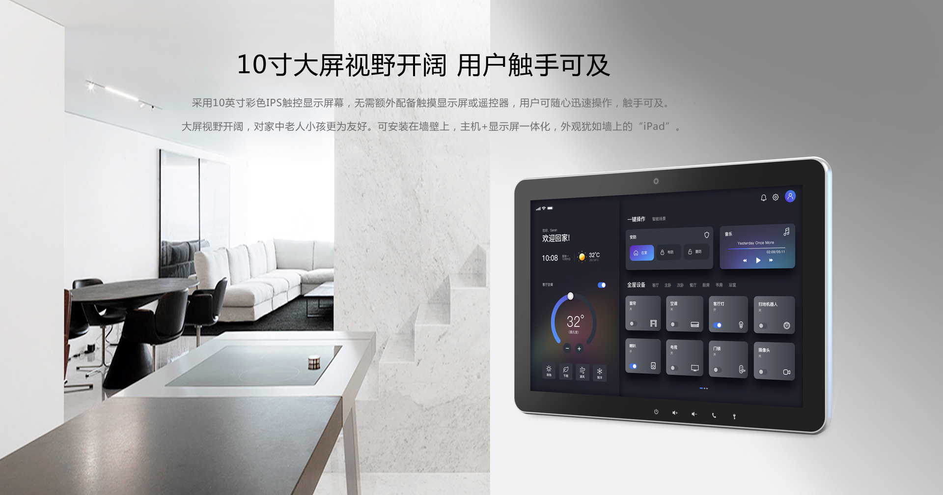 采用10英寸彩色IPS高清显示屏幕,全触摸屏操作,简约风格的人机交互界面,彰显高端品质,安卓操作系统,用户可随心操作,触手可及。支持最多256个无线子设备。双向无线通讯,基于TCP/IP、4G、WiFi网络可实现防盗报警视频监控、家电控制、报警联动,抓拍报警图片并迅速做出安防联动应对。●10寸1280X800IPS宽视角高清显示屏●内核4XA53,2G/DDR,16G/EMMC●Andriorid11,H265编解码●支持双向可视对讲功能,通话声音清晰,视频流畅●支持9路IPC接入,4路视频显示 SD卡录像●支持256个FSK、LORA+Zigbee、Z-Wave智能设备●支持WiFi、BLT4G 、TCP/IP联网通信●特有MIFI功能,支持PC、APP远程控制●支持定时布撤防,定时开关控制,一键报警